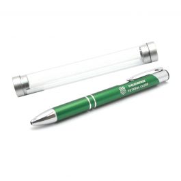 Caneta modelo social, corpo metálico fisicamente mais grosso. Ponta da caneta abre ao clicar a parte superior. Acompanha tubinho para torná-la o presente ideal.