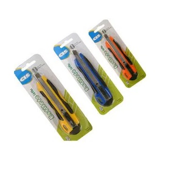 Estilete Cis 169 bc com lâmina estreita possui grip emborrachado, corpo plástico resistente, sistema de trava seguro. Prático para manuseio.