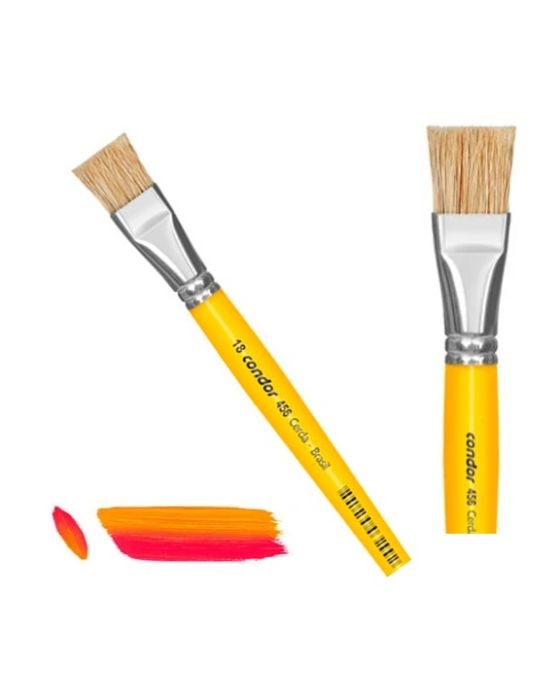 O cabo longo do pincel é feito de madeira amarela, proporcionando um toque de elegância e conforto durante o uso. A virola é feita de alumínio, garantindo a firmeza das cerdas e a durabilidade do pincel. O formato chato do pincel permite uma aplicação suave e uniforme da tinta, ideal para criar detalhes finos ou cobrir grandes áreas.