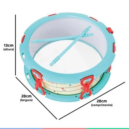 01 tambor, 02 baquetas, 01 pandeiro, 02 maracas, 02 castanholas