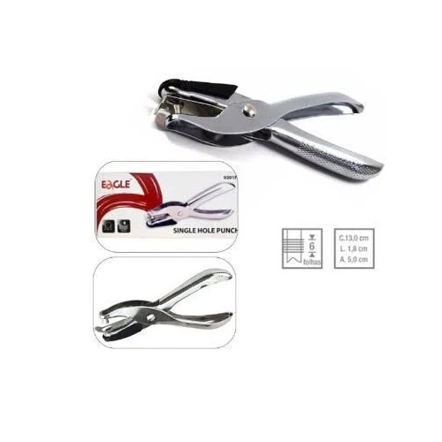 Perfurador Alicate Eagle 1 Furo tem diâmetro de perfuração de 6 mm, capacidade para perfurar 6 folhas no total e corpo de metal.