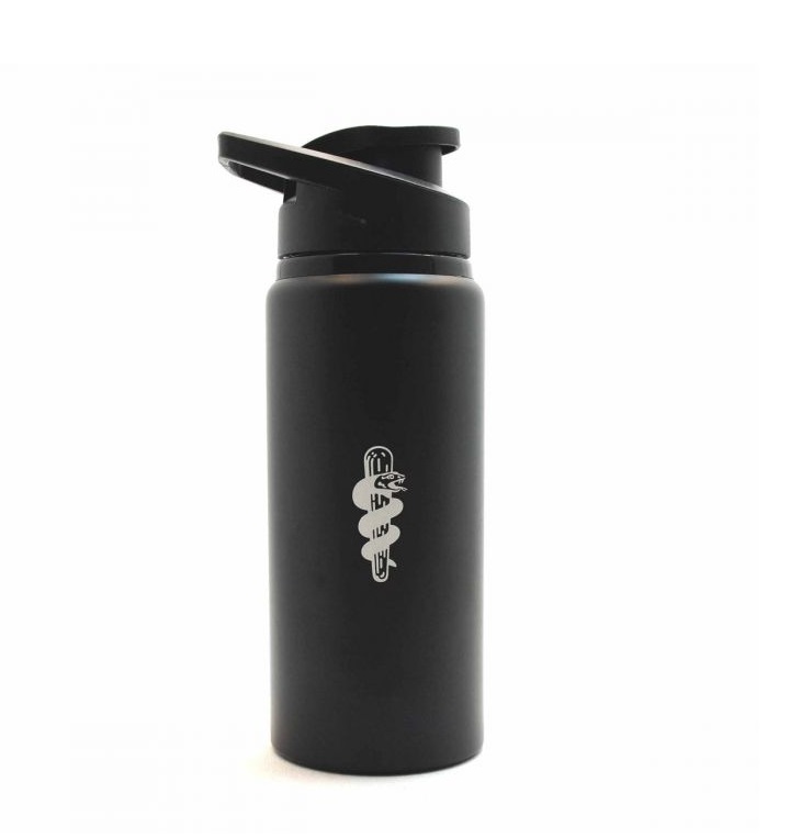 Fabricada especialmente para todo profissional apaixonado, o squeeze conta com capacidade para cerca de 600ml e traz alumínio em sua composição, apresentando material resistente e duradouro. Traz preto na tampa, que por sua vez, é rosqueável, com bocal e conta com alça, o que facilita seu manuseio.