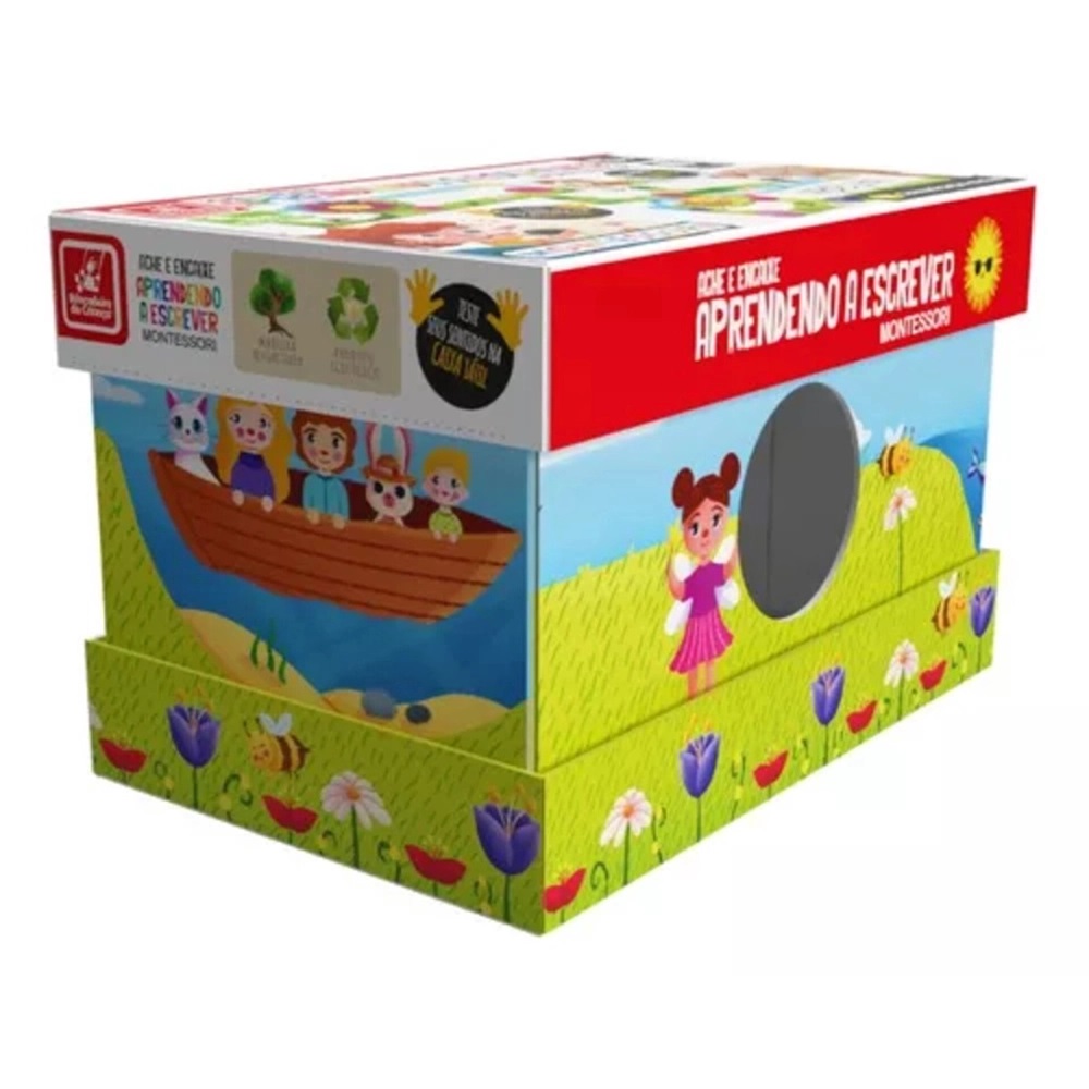 O Jogo Ache e Encaixe Aprendendo a Escrever Montessori possibilita que as crianças desenvolvem a coordenação motora aprendendo a escrecer de forma divertida. Com o restante das atividades, exercitam habilidades da escrita, leitura e desenho, em um só brinquedo. São diversas formas de brincar e muitas palavras para escrever.