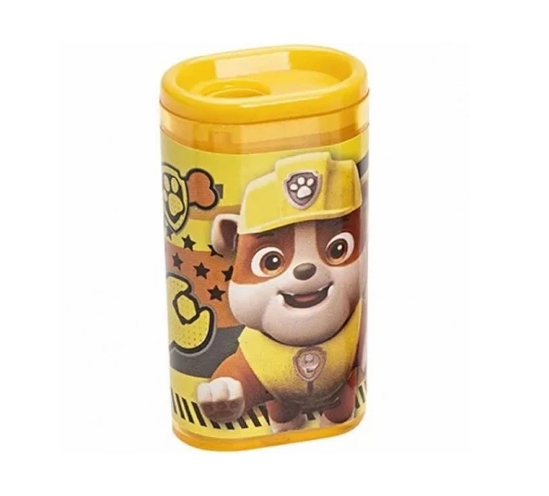 Apontador com depósito personalizado com imagens do personagens da Patrulha Canina. Lâminas em aço inox de alta qualidade e durabilidade, apontam muito sem perder o fio e sem estragar o lápis.