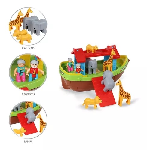 O Barco Arca de Noé proporciona aos pequenos estímulo ao desenvolvimento no aprendizado e habilidades das crianças, também pode auxiliar coordenação motora, ajudar no reconhecimento das formas, cores e figuras, estimular a concentração, e criatividade! Afinal aprender brincando é muito mais legal!
