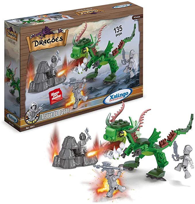 Estimule desde cedo à criatividade e a imaginação das crianças com a linha de Blocos para montar Dragões da Xalingo Brinquedos. O Ataque do Dragão 135 peças possibilita a montagem de um extraordinário dragão. É uma ótima opção para estimular o desenvolvimento do raciocínio, a percepção, a criatividade e a coordenação motora dos pequeninos.