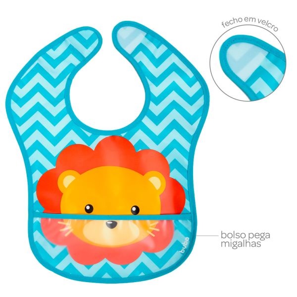 \par O Babador Imperme\'e1vel Buba \'e9 ideal para as mam\'e3es que querem praticidade e leveza no dia a dia das crian\'e7as. Possui tecido imperme\'e1vel que facilita a limpeza e protege o beb\'ea dos respingos da alimenta\'e7\'e3o. A mam\'e3e poder\'e1 manter a roupinha do seu Pr\'edncipe ou Princesa sempre limpinha! Vem com bolso na posi\'e7\'e3o frontal que serve como cata migalha evita o desperd\'edcio durante as refei\'e7\'f5es. Possui fecho colante que se ajusta ao pesco\'e7o do seu beb\'ea. Com suas cores alegres e estampas divertidas, os babadores Buba far\'e3o do momento da refei\'e7\'e3o uma ocasi\'e3o mais feliz!