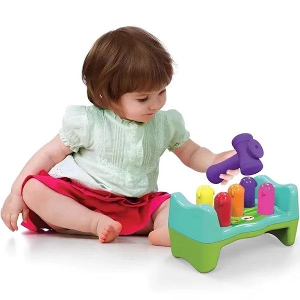 Com visual colorido,minhocas com carinhas divertidas e um martelo fofinho a diversão é garantida.