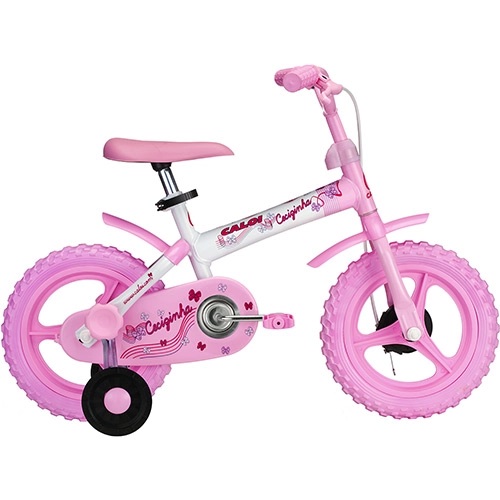 Disponível na cor rosa, o produto vem equipado com rodas laterais que darão suporte mais adequado, enquanto a criança se adapta a bicicleta.
