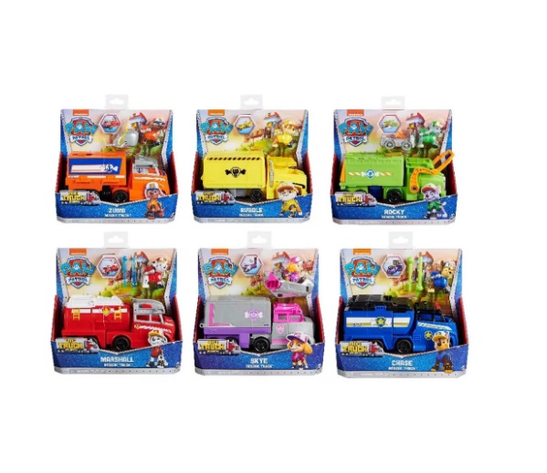 Há 6 opções de personagens para a sua coleção: Zuma, Rocky, Skye, Marshall, Rubble e Chase (vendidos seáradamente).