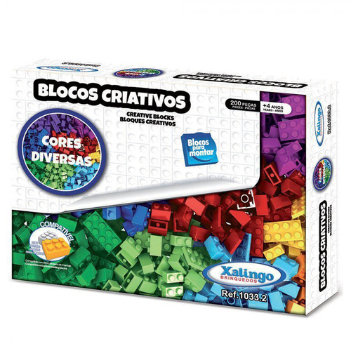 São infinitas as possiblidades de criar e recriar com os Blocos Criativos Xalingo Brinquedos. As crianças podem construir através de sua criatividade casas, castelos, e tudo o que mais possam imaginar. São 200 peças sortidas de diversas cores, tamanhos e formatos. Possibilita as mais diversas montagens, podendo ser montado e desmontados quantas vezes as crianças quiserem. Estimulam a criatividade, habilidades motoras e coordenação espacial, através do raciocínio lógico com muita diversão.