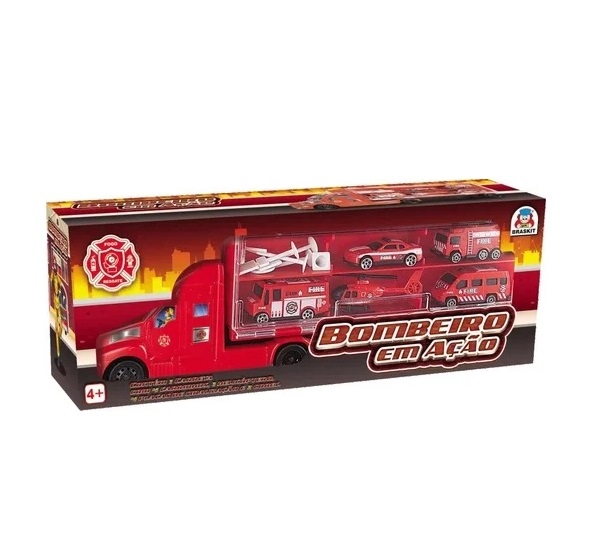 \par Carreta Bombeiro em A\'e7\'e3o, que permite us\'e1-lo para guardar mais 6 carrinhos al\'e9m dos que acompanha o caminh\'e3o.