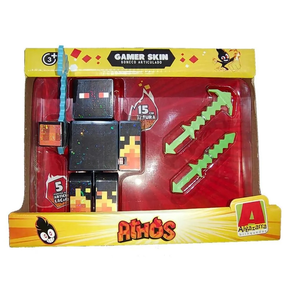 Prepare-se para explorar cavernas misteriosas, construir fortalezas grandiosas e enfrentar mobs perigosos. Seja para brincar ou colecionar, o boneco Athos é a companhia ideal para fãs de todas as idade.