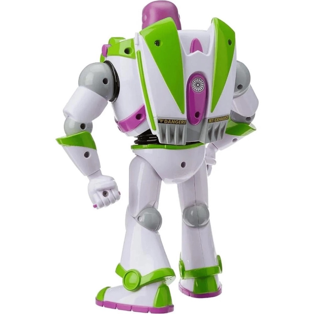 O Boneco Mede Aproximadamente 26 cm de altura. Possui 10 Frases Diferentes do Seu Astronauta Favorito (exemplos: Vamos Salvar a Galáxia! / Ao Infinito e Além! ).