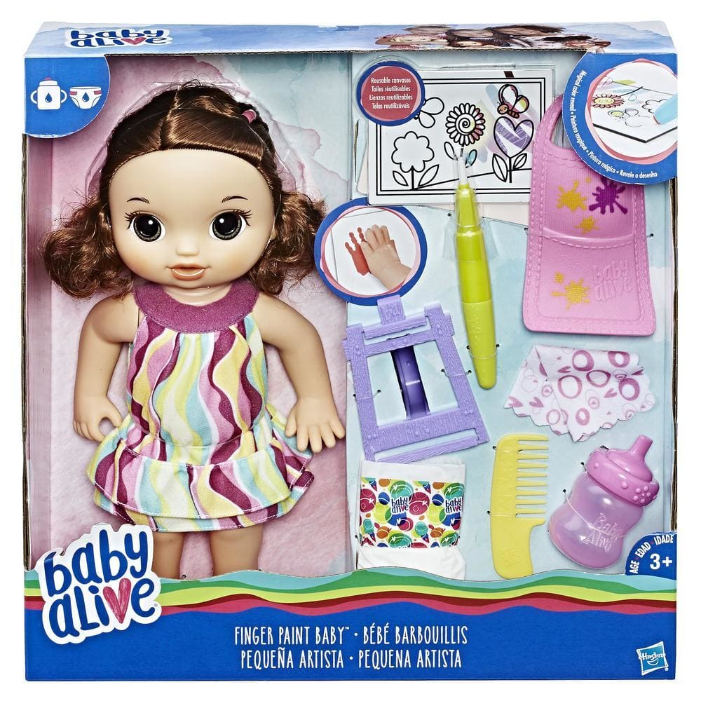 A Baby Alive Pequena Artista ama pintar, e agora ela se transformou em uma artista! Com seu pincel mágico você pode pintar a mão de sua filhinha para deixá-la vermelha e brincar de carimbar o papel.