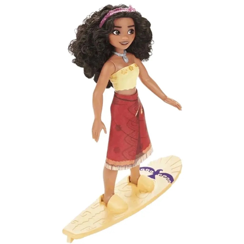 Moana adora surfar nas grandes ondas de Motunui. Este kit vem com a boneca da princesa Moana e uma prancha que muda de cor na água morna. A boneca vem pronta para aventuras diárias com roupa inspirada no filme. Esta boneca Disney Princess possui cabelos pretos ondulados e 5 pontos de articulação para que as crianças possam criar diversas poses com a boneca Moana.