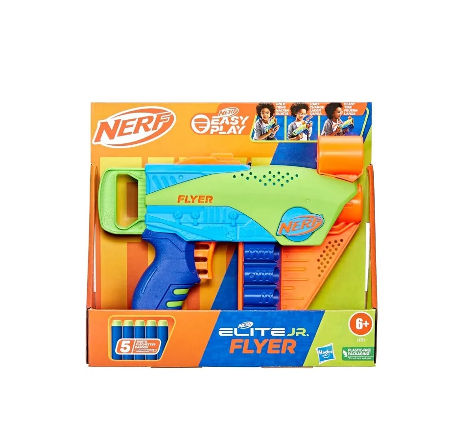 - Contém: 1 Nerf Elite Junior Flyer e 5 Dardos