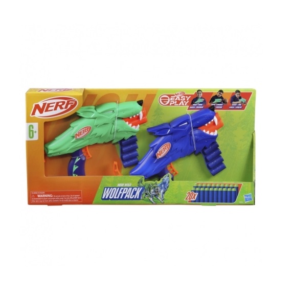Muita diversão para os mais jovens fãs de Nerf. Eles são perfeitos para meninos e meninas iniciantes em brincadeiras com dardos Nerf. O kit Nerf Wild Wolfpack inclui 2 lançadores Nerf com um poderoso design de lobo! Cada lançador de brinquedo colorido de lobo tem capacidade para 2 dardos e lança 1 dardo por vez.