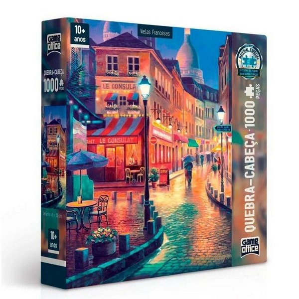 Montar um Quebra-Cabeça é mais do que separar peças e tentar encaixá-las, formando imagens, é um desafio estimulante e prazeroso. Um passatempo lúdico que sociabiliza e une pessoas em torno de lindas imagens que fazem sonhar. Seja por passatempo ou por hobby traz momentos de alegria a cada peça montada. Desafie suas habilidades com este divertido quebra-cabeça de 1000 peças das lindas Vielas Francesas. Temos um padrão internacional de qualidade!