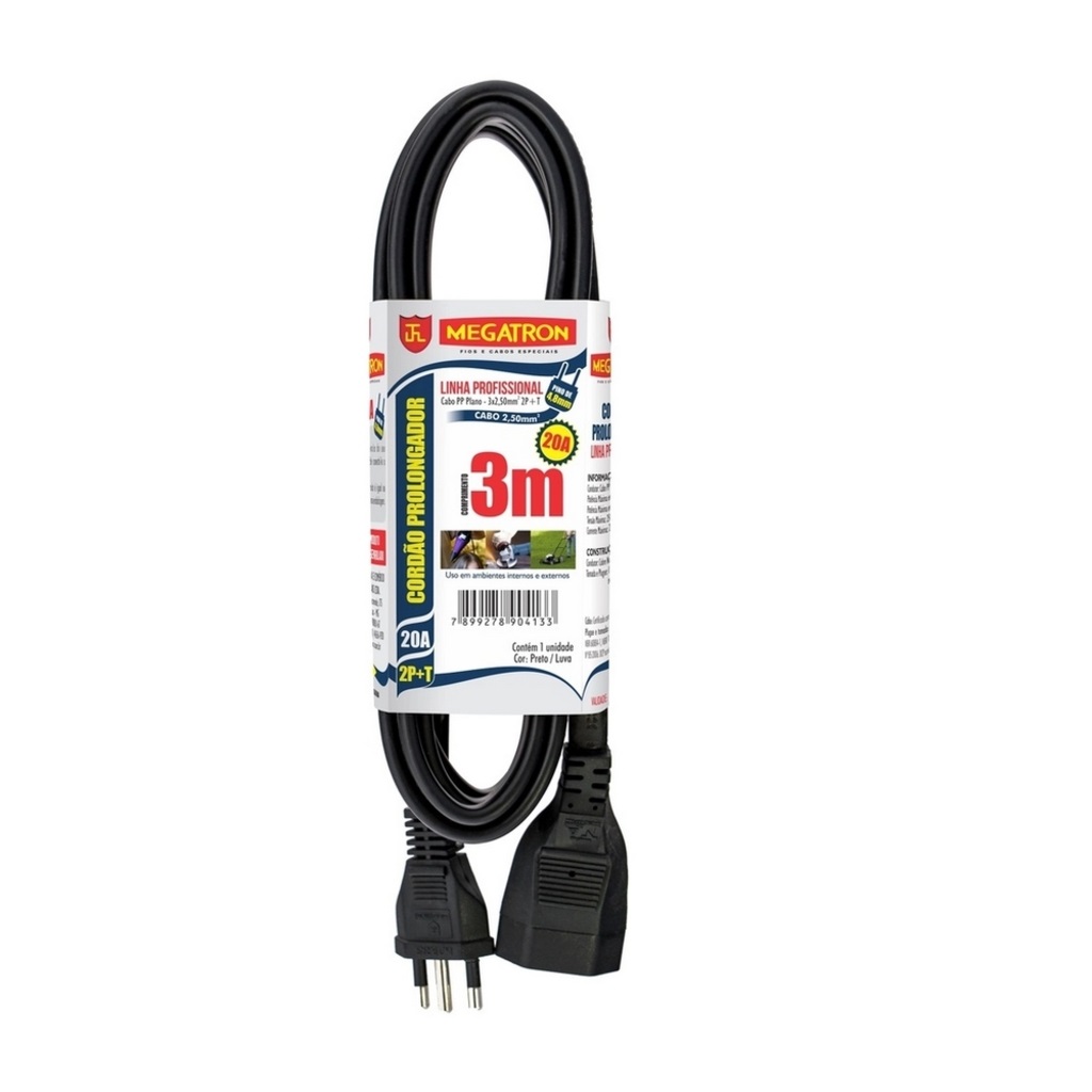 CABO DE EXTENSÃO 1 TOMADA MEGATRON 20A 3 METROS PRETO - MEGATRON