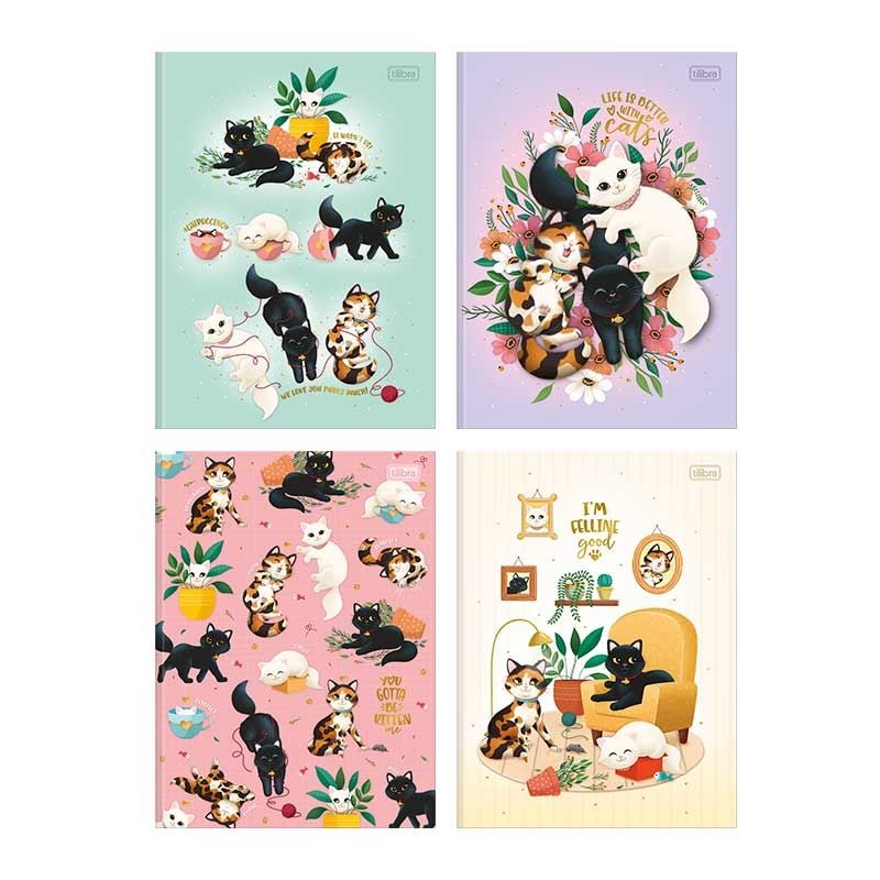 O Caderno Brochura Capa Dura Universitário Purrfect Cats 80 Folhas possui capa dura com a parte interna decorada, folha dupla de adesivos e folhas pautadas.