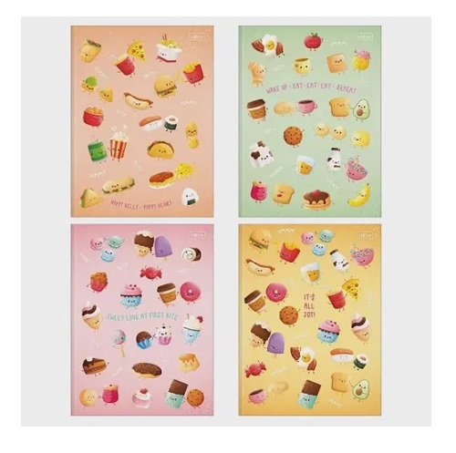 O Caderno Brochura Capa Dura Universitário Taste 80 Folhas possui capa dura com a parte interna decorada, folha dupla de adesivos e folhas pautadas.