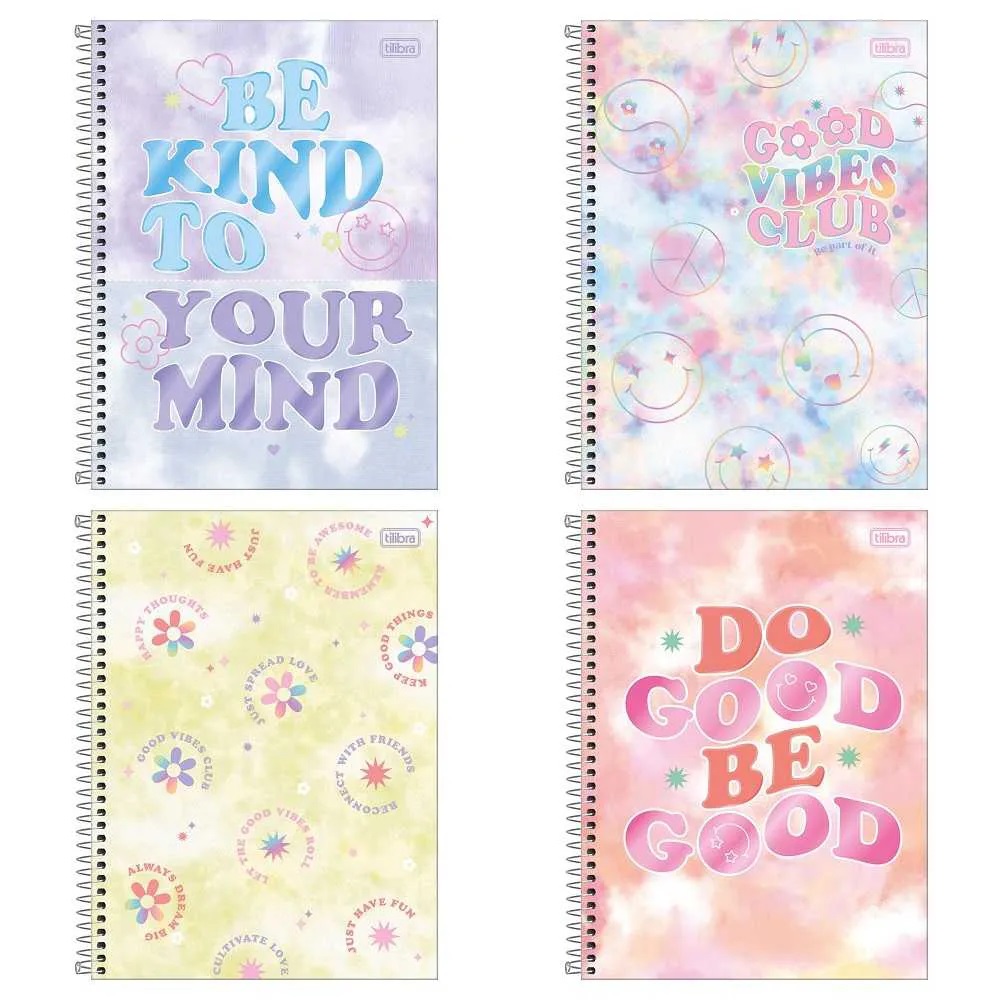 O Caderno Espiral Capa Dura Colegial 10 Matérias Good Vibes possui formato inovador e compacto, ideal para quem gosta de praticidade.