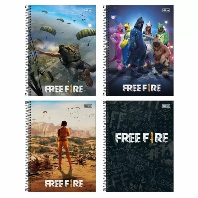 O Caderno Universitário Free Fire com 80 folhas possui capa dura, folhas pautadas, espiral colorido, bolsa de papel para acomodar folhas avulsa, página de adesivos e páginas para divisões de matérias decoradas.