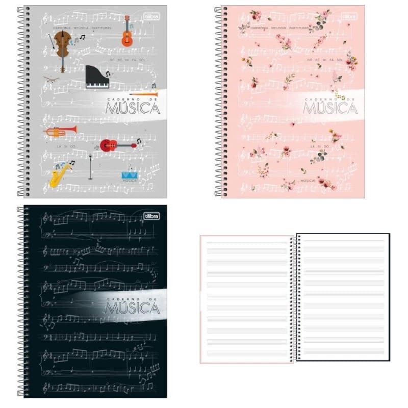 O Caderno de Música Espiral Capa Dura Universitário Tilibra 80 Folhas possui capa dura e folhas específicas para partituras.