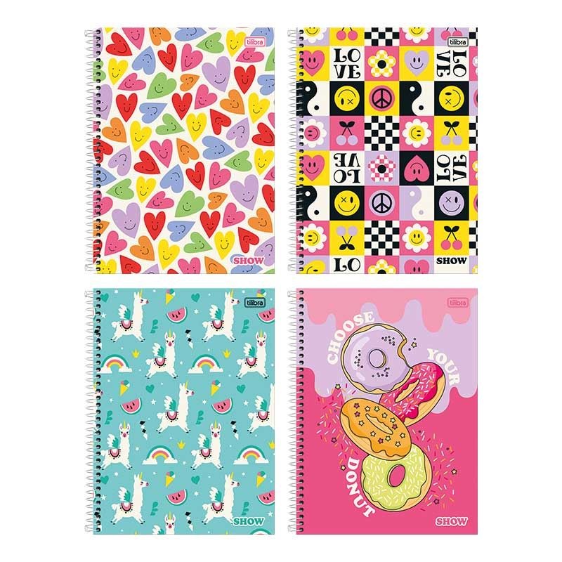 O Caderno Espiral Capa Dura Universitário 20 Matérias Show Feminino 320 Folhas possui capa dura, bolsa plástica para guardar trabalhos e anotações, folha com adesivos funcionais, folhas pautadas e espiral colorido. Ideal para o dia a dia na escola ou na faculdade.