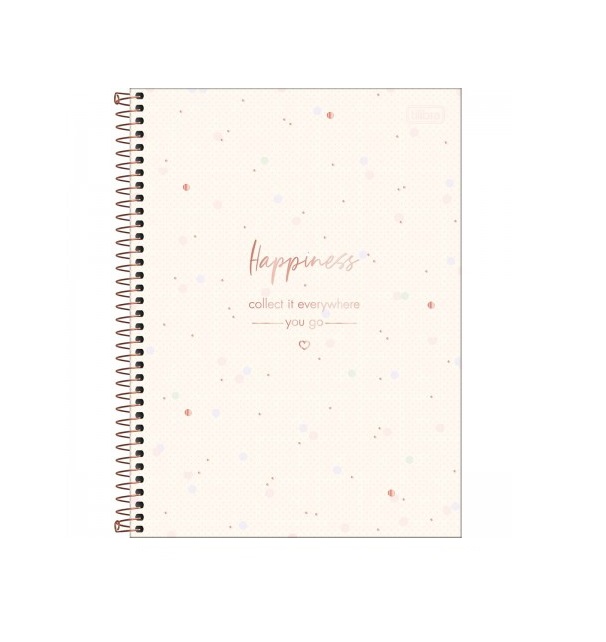 Use este modelo, com capa dura com detalhes metalizados e parte interna decorada, bolsa de papel decorada para guardar trabalhos, adesivos funcionais, folhas pautadas e espiral colorido, para anotar as aulas, fazer resumos, listar tarefas e organizar as ideias de forma prática e eficiente.