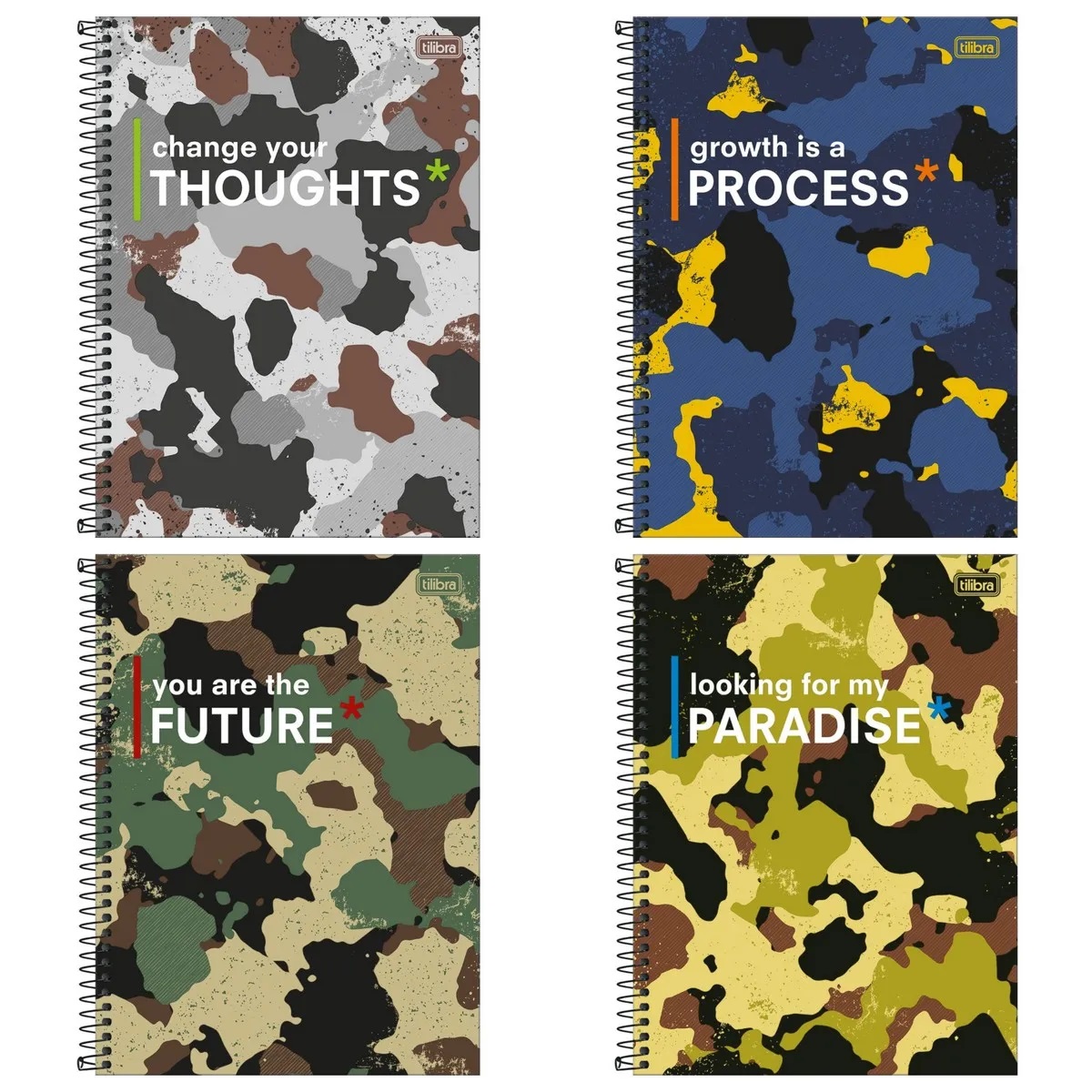 O Caderno Espiral Capa Dura 1/4 Hide 80 Folhas possui capa dura com a parte interna decorada, folhas pautadas e espiral colorido.