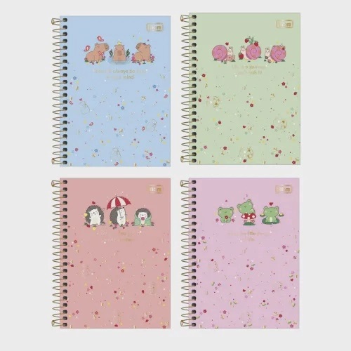 O Caderno Espiral Capa Dura 1/4 Mellow 80 Folhas possui capa dura com detalhe metalizado, parte interna decorada, folha com adesivos, folhas pautadas decoradas e espiral colorido. Ideal para o dia a dia.
