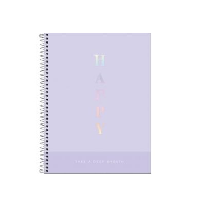 A Caderneta Espiral Capa Dura 1/8 Happy 80 Folhas possui capa dura com a parte interna decorada, folhas pautadas decoradas e espiral colorido. Ideal para o dia a dia.
