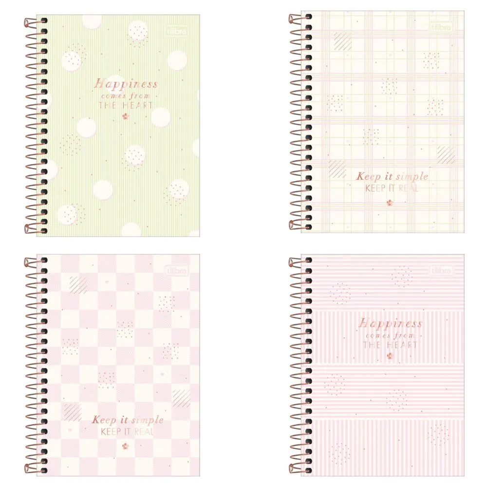 A Caderneta Espiral Capa Dura 1/8 Soho 80 Folhas possui capa dura com detalhe metalizado, parte interna decorada, folhas pautadas decoradas e espiral colorido. Ideal para o dia a dia.