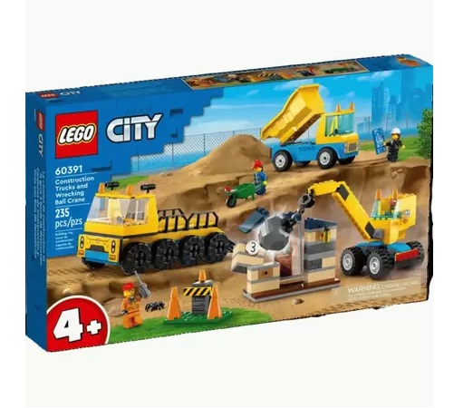 As crianças aprendem enquanto constroem e brincam com o conjunto de construção LEGO® City Caminhões de Construção e Guindaste com Bola de Demolição (60391). Feito especialmente para crianças maiores de 4 anos, este conjunto de construção inclui 3 veículos de construção, uma casa abandonada com função para derrubar, 3 minifiguras de trabalhadores e acessórios divertidos para brincadeiras imaginativas.