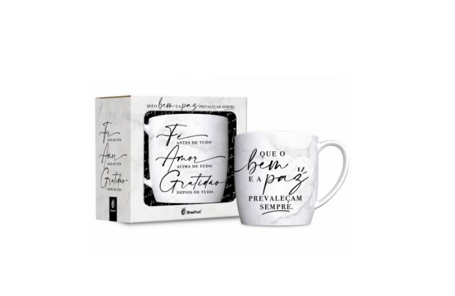 CANECA PORCELANA URBAN 300ML FÉ - FÉ AMOR E GRATIDÃO