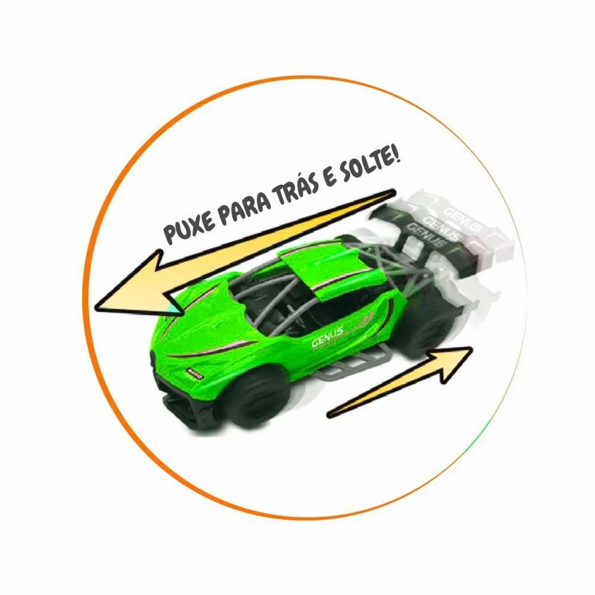 As crianças apaixonadas por carrinho e velocidade vão se divertir com esse veículo movido à fricção altamente detalhado. Para brincar é muito fácil. Não precisa de pilhas para funcionar! Basta puxar o carrinho para trás e soltá-lo. Friccione o carrinho e prepare-se para uma corrida radical! Genus, um carrinho veloz e radical.
