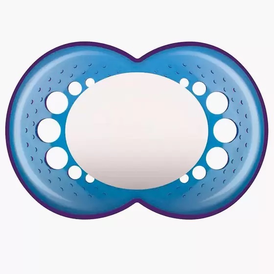 A Chupeta MAM é clássica e possui design moderno, sempre de acordo com as principais tendências. Seu disco curvado reduz o contato com a pele sem deixar marcas e seus furos de ventilação melhoram a circulação de ar, proporcionando um máximo conforto.