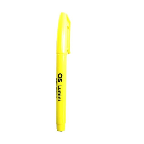 Destacador de texto amarelo com ponta sintética, formato chanfrado, proporcionando 2 espessuras diferentes no uso. Tinta a base de água, lavável.