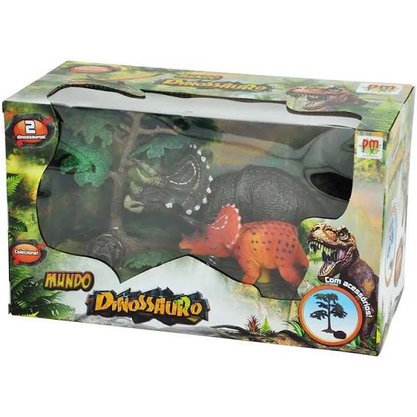 Coleção Mundo Dinossauro Model 2 Figuras + Acessórios dm Toys.
