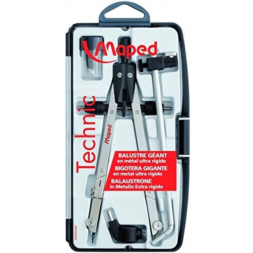 A Maped Giant oferece um compasso técnico projetado para atender aos mais altos requisitos em termos de precisão e confiabilidade. O diâmetro máximo com extensão é de 50cm. Perfeito para estudantes e profissionais que procuram um compasso de qualidade e durável. Conjunto contém: 1 compasso Barra de extensão Suporte universal
