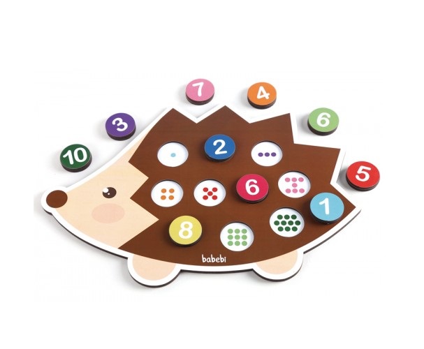 Com os botões que sinalizam os numerais e os orifícios as quantidades, as crianças contam os pontinhos coloridos e associam as quantidades aos números de uma maneira muito divertida.