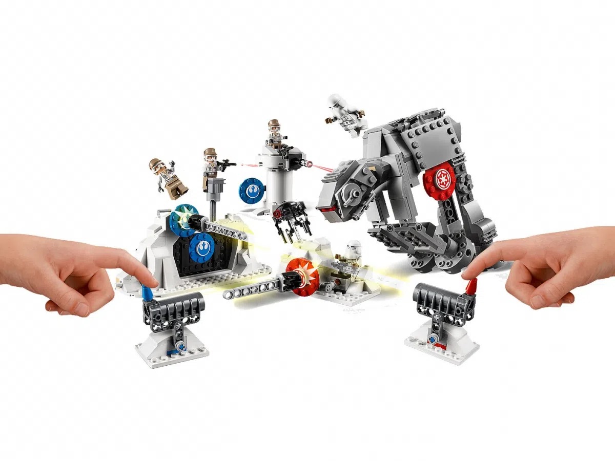 Construa e brinque com um divertido brinquedo de construção Batalha de Hoth de LEGO Star Wars! Prepare-se para diversão de disparo de mísseis com os seus amigos com Defesa Action Battle Echo Base de LEGO Star Wars! Construa o portão de entrada da base Rebelde, torre com canhão, trincheira e AT-AT Walker. Depois coloque os soldados Rebeldes e Snowtroopers em posição, carregue os mísseis nos disparadores, aponte aos alvos de seus aniversários e dispare! Será que você consegue derrubar o AT-AT antes que ele faça explodir os portões e destrua a Echo Base. A decisão é sua, neste conjunto de ação do tema Batalha de Hoth!