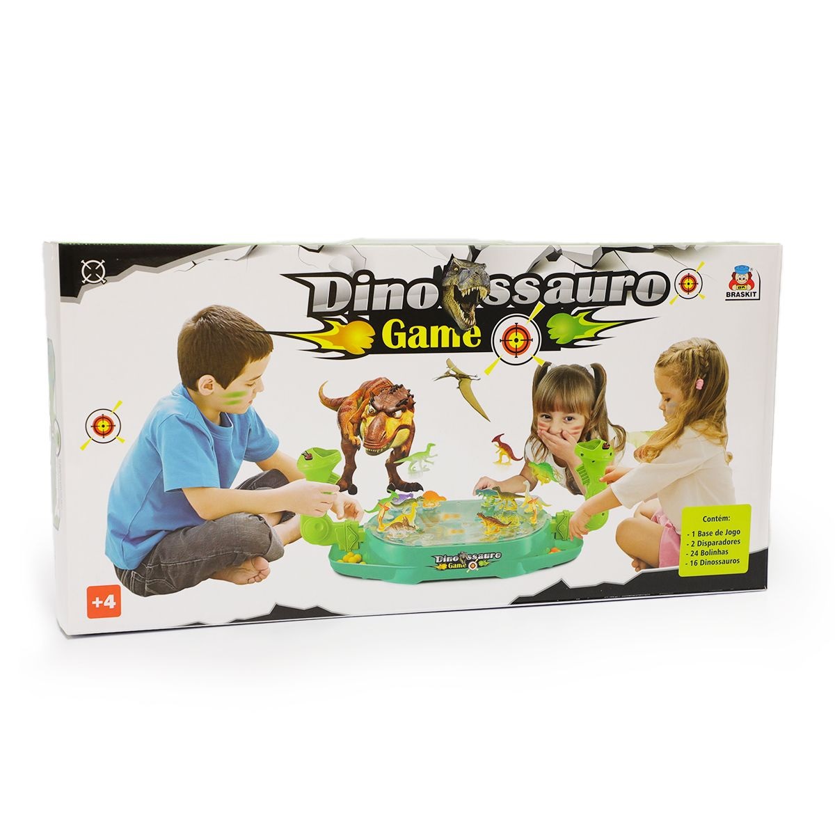 - Contém: 1 Base de jogo, 2 Disparadores, 24 Bolinhas, 16 Dinossauros