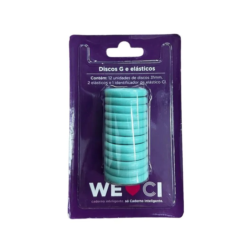 O kit contém: 12 unidades de discos e 02 elásticos e 01 identificador de elástico CI.