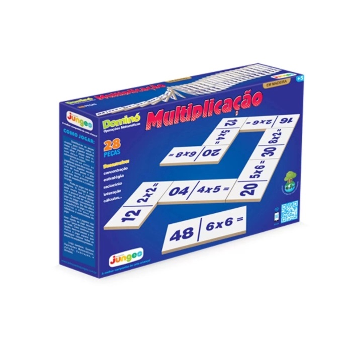 Jogo Dominó da Junges com 28 peças de 3,5x7cm cada, em madeira de reflorestamento (mdf). Impressão direto na madeira com acabamento de alta qualidade, durabilidade e resistência.