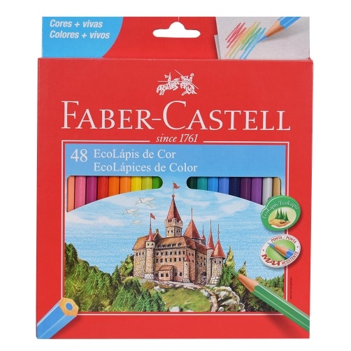 Dê mais vida e cor a seus trabalhos com o conjunto de lápis de cor da Faber Castell. Possui 48 lápis em formato sextavado, cores sortidas, inclusive duas metálicas. Desenha macio, são fáceis de apontar e super-resistentes. Produzido com madeira de manejo florestal sustentável e certificada, conta com ponta max resistente.