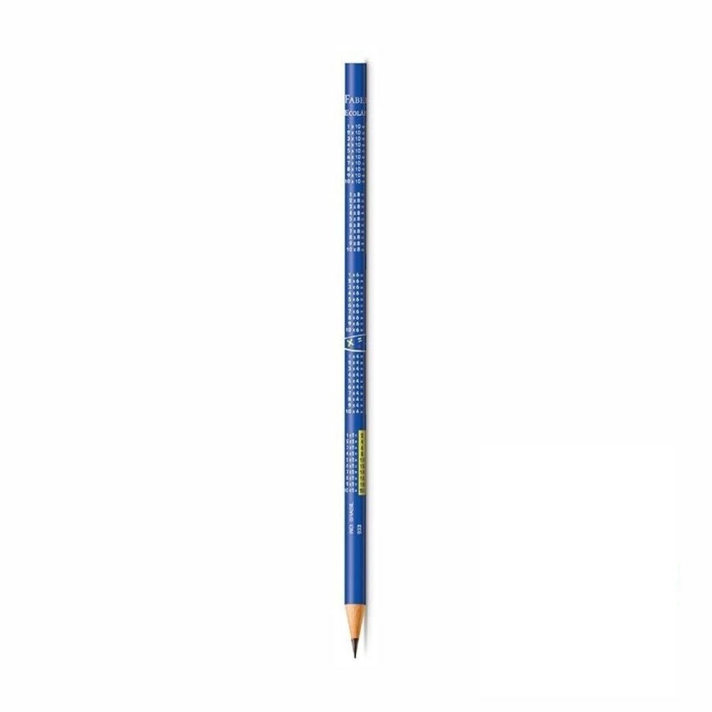 Lápis escolar com tabuada estampada. Fabricado por Faber Castell.