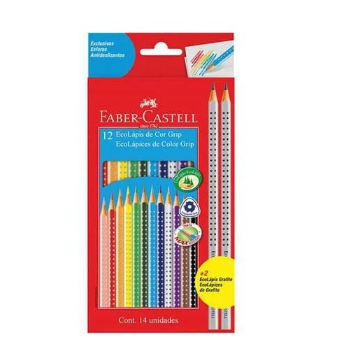 Ecolápis De Cor Faber Castell Grip 12 Cores + 2 Grafite 121012+2